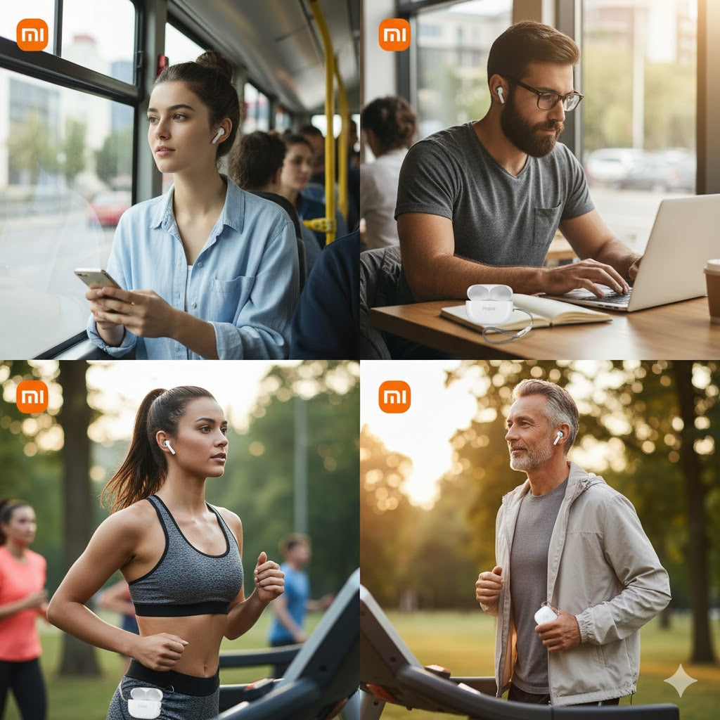 Construídos com material ABS leve e resistente, os fones TWS da Redmi possuem um design Semiaberto que oferece um ajuste ergonômico, ideal para longas horas de uso. Sua classificação à prova d'água (Waterproof) confere a durabilidade necessária para enfrentar treinos intensos (ótimo para Sport) e chuvas leves.